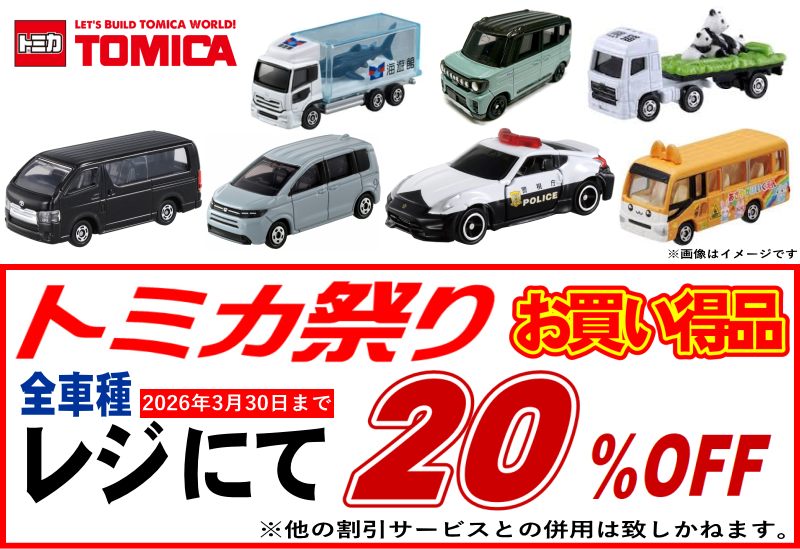 大人からお子様まで人気のトミカが全車種20%OFF!